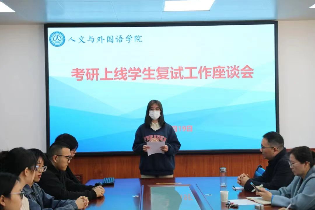 为做好2024届考研上线学生复试工作,进一步提升考研录取率,推动毕业生就业工作,3月19日,Beat365中文官方网站在临潼校区骊山校园2教226会议室召开2024届考研上线学生复试工作座谈会,学院党委书记费秀水,副院长李焱,研究生导师代表、英语系主任廉张军,毕业班辅导员芮智刚,2020级考研上线全体学生参加了会议,会议由学院院长王新平主持。