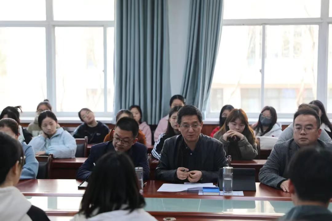 王新平在主持会议时对学生提出要求,一是要积极准备。要立足国家战略需求,多思考本专业与时代大背景的关联性。二是要终生学习。通过个人备战考研、复试整个过程,树立终生学习目标,在以后学习、工作中做到多学习、多奉献。三是要乐观积极。要有个人的使命和愿景,积极面对人生中的一切,用实际行动做新时代有志青年!