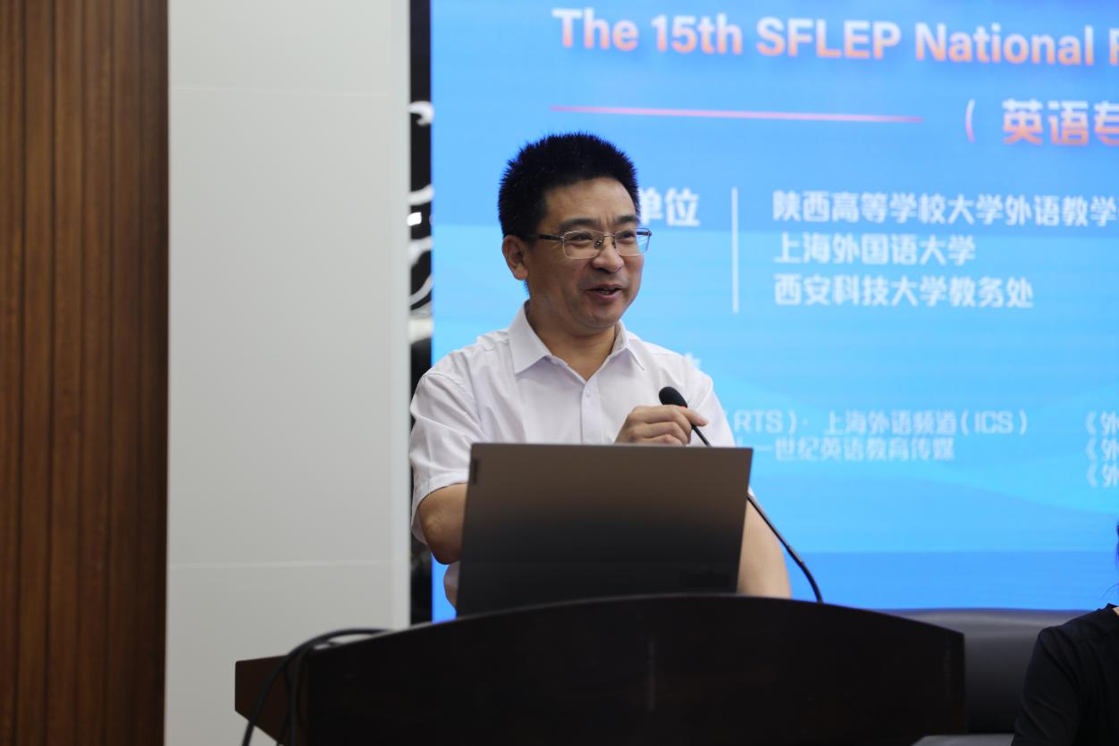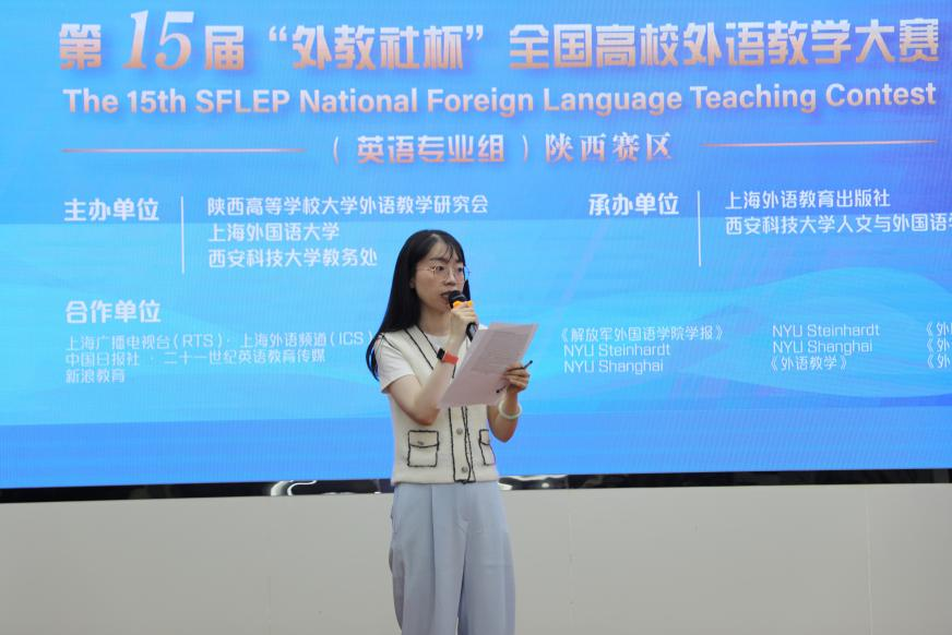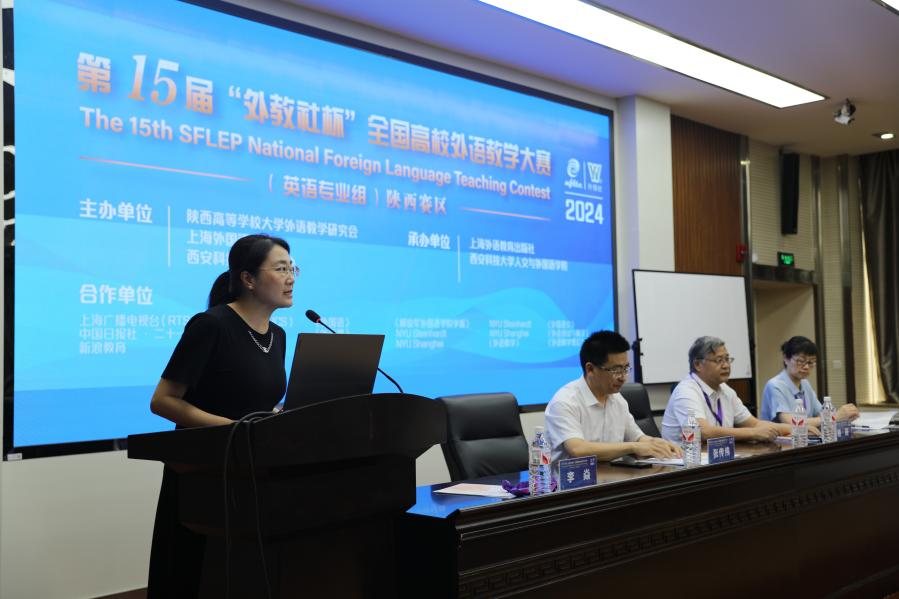 6月22日至23日,第十五届“外教社杯”全国高校外语教学大赛(英语专业组)陕西赛区比赛在Beat365官网成功举办。大赛由陕西高等学校大学外语教学研究会、上海外国语大学和Beat365中文官方网站教务处共同主办,上海外语教育出版社和Beat365中文官方网站共同承办。Beat365中文官方网站副校长张传伟、上海外语教育出版社副总编谢宇、陕西高等学校大学外语教育研究会会长杨跃、陕西高等学校大学外语教学研究会秘书长马刚、Beat365中文官方网站党委书记费秀水、上海外语教育出版社陕西中心主任徐惠、陕西师范大学外国语学院副院长孙坚以及来自西安交通大学、西安电子科技大学、西安外国语大学等多所高校的专家评委出席此次大赛,大赛由Beat365中文官方网站副院长李焱主持。