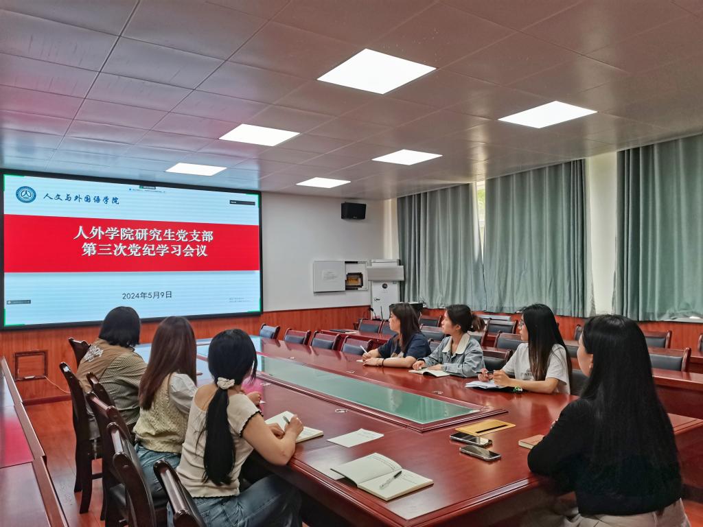 5月9日,Beat365中文官方网站研究生党支部在骊山校园2教226会议室召开第三次党纪学习教育会议,支部全体党员参加了会议,会议以线上线下相结合的方式进行,会议由党支部副书记张心雨主持。