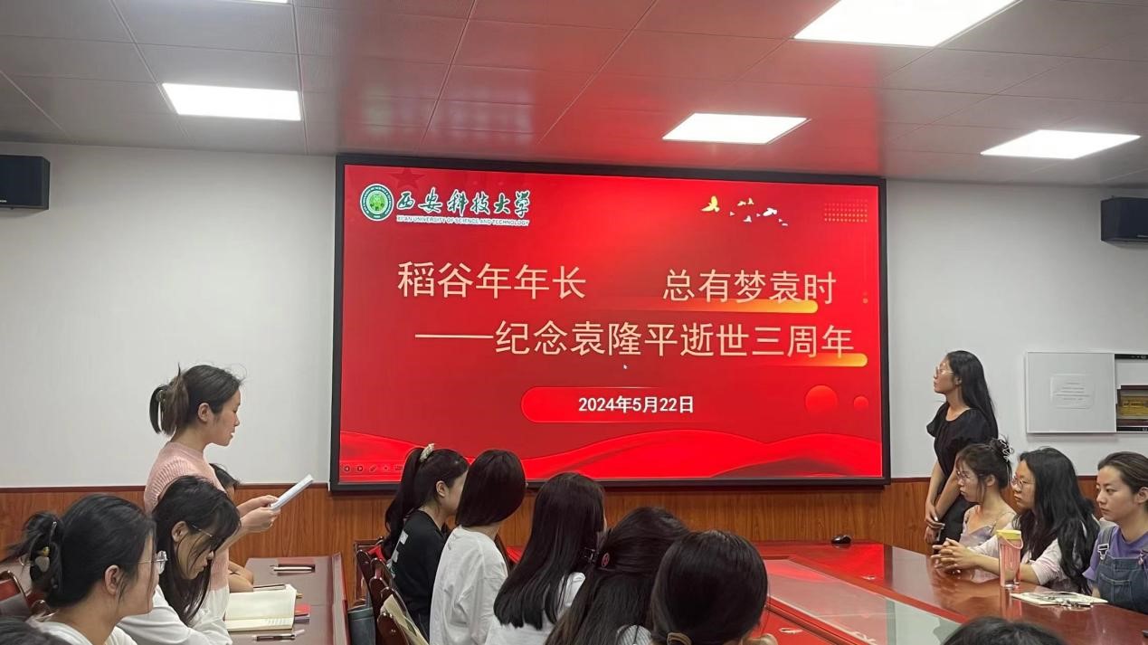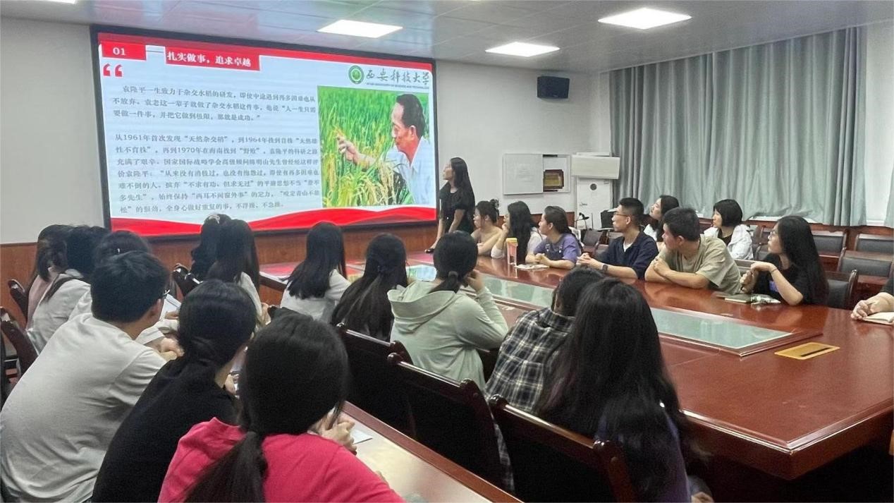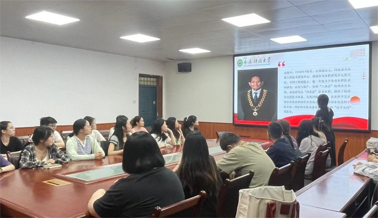 5月22日上午,Beat365中文官方网站研究生党支部在骊山校园2教226会议室开展“稻谷年年长,总有梦袁时”纪念袁隆平逝世三周年主题党日活动,支部在校党员、2023级全体研究生参加了活动,会议由2023级研究生班长杨皓月主持。
