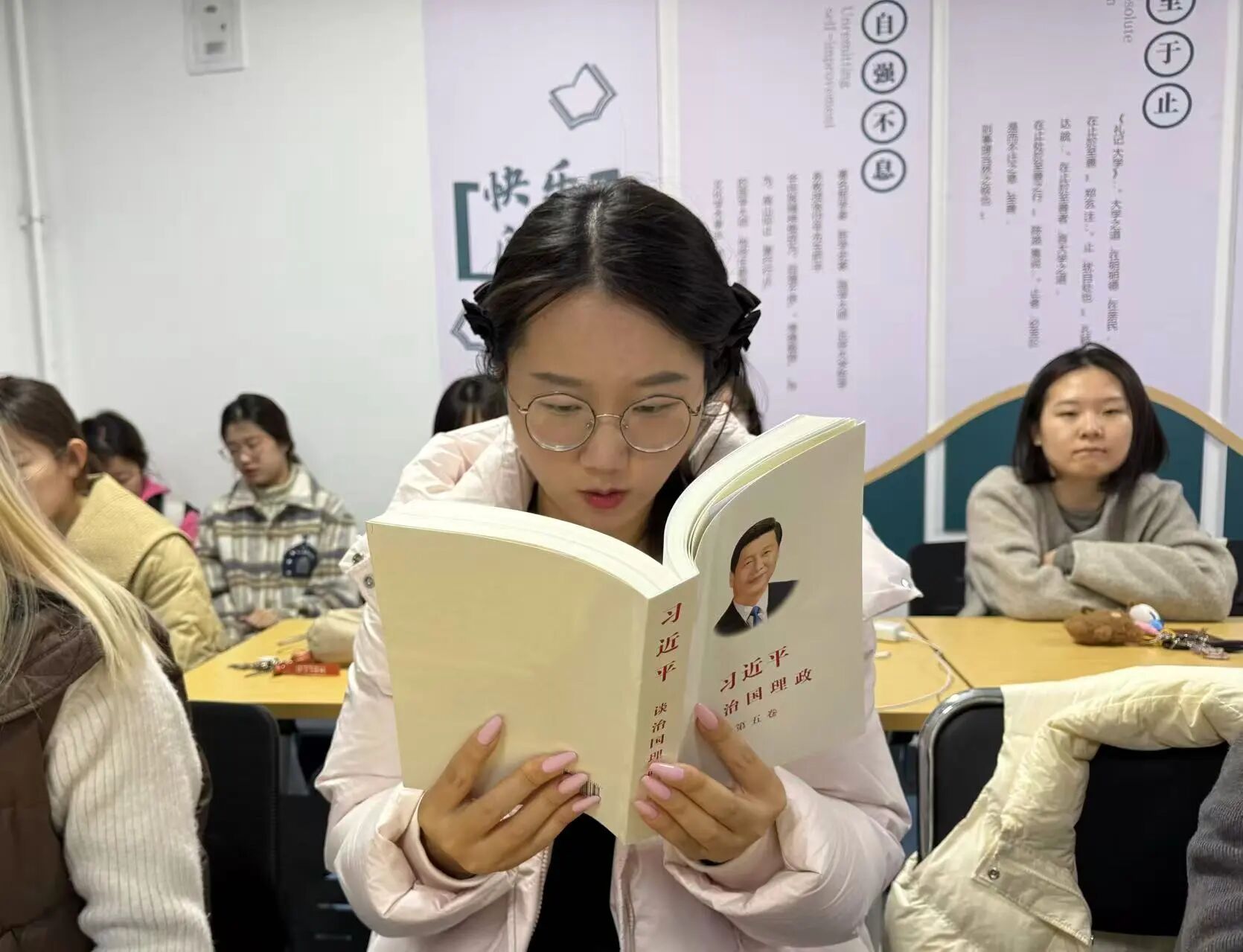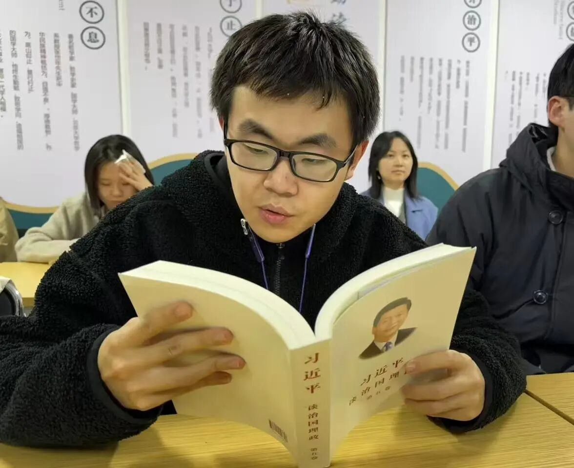 在学习交流环节,党员和积极分子们结合自身专业,围绕科技创新驱动高质量发展、在推进共同富裕中展现青年担当等内容展开讨论。大家一致认为,通过学习英文版本,不仅提升了自身理论素养,更增强了用国际视野讲好中国故事、传播中国理念的能力。