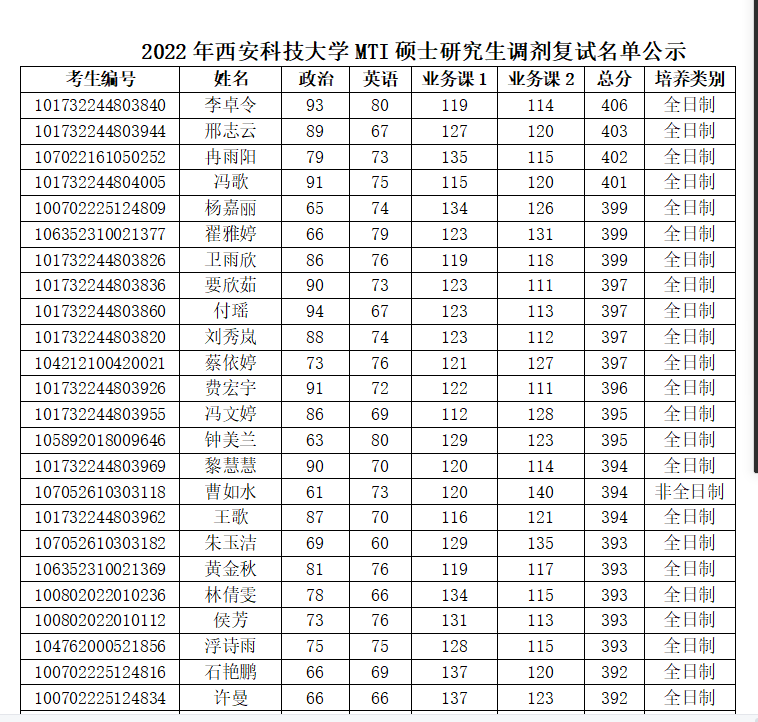 2022年Beat365中文官方网站MTI硕士研究生调剂复试名单公示